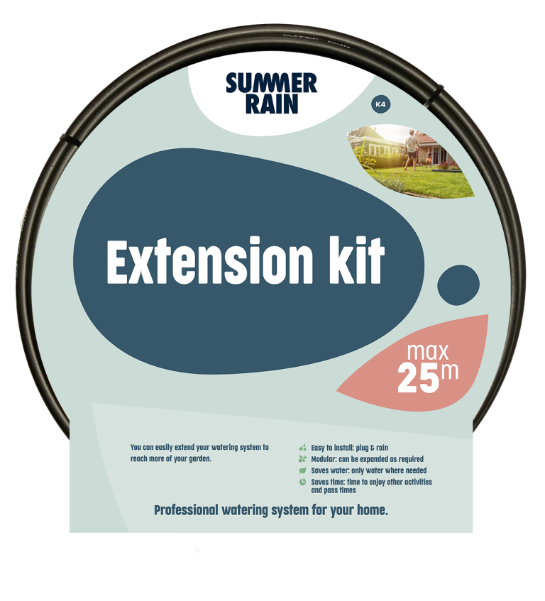 Borders and large plant pots in your garden can be watered very easily with SummerRain. Both from above with a micro-sprinkler and close to the roots with a drip hose. This provides even watering and saves water.