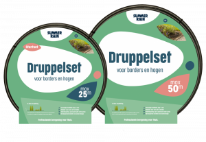 Druppelset voor borders en hagen: voor borders en hagen is er de ‘Druppelset Borders & Hagen’. Met deze set geef je moeilijk te bereiken borders en hagen makkelijk de juiste hoeveelheid water. Heb je borders met veel kleine planten? Leg de slang dan op een onderlinge afstand van 50 centimeter.