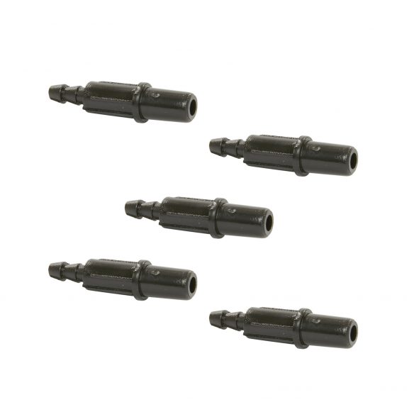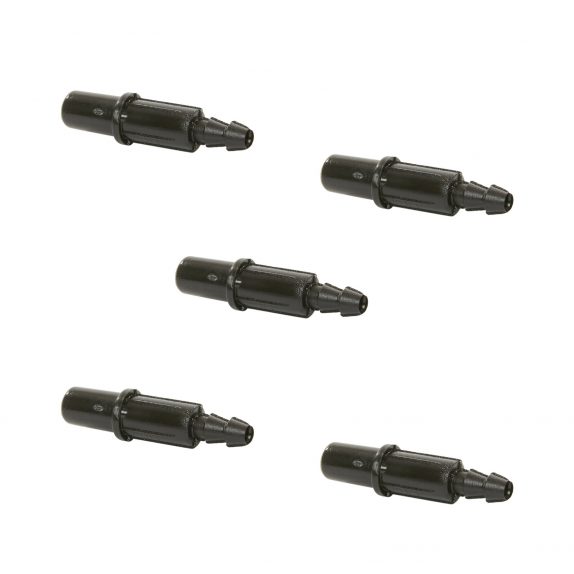 Dit verbindingsstuk gebruik je om de bordersproeier (M6) aan de microslang vast te maken. Zo kan je planten en borders van bovenaf sproeien. Met de verlengbuizen kan dit hoger of lager gebeuren, en groeit je watergeefsysteem met je planten mee. Deze koppelstukken komen in een set van 5 en zijn standaard meegeleverd in de sproeiset voor borders. Gebruik deze als je extra sproeiers wilt aansluiten op je set of als je er eentje kwijt bent.